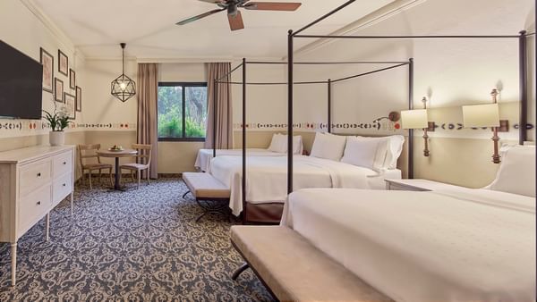 Disfruta del equilibrio perfecto entre historia y confort moderno con Wi-Fi gratuito, televisores inteligentes, minibar surtido y camas con la parte superior acolchada que invitan al descanso absoluto. Y cuando quieras consentirte aún más, nuestro servicio a la habitación 24 horas está listo para llevarte el sabor de la Hacienda directamente a tu puerta.