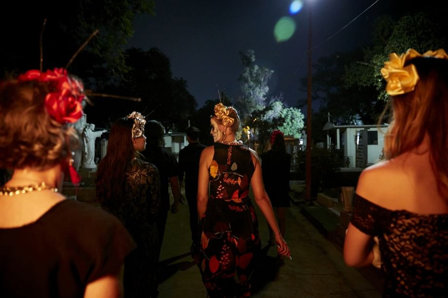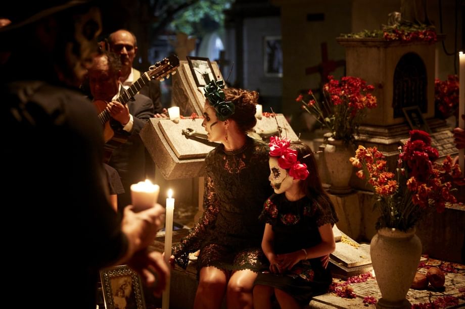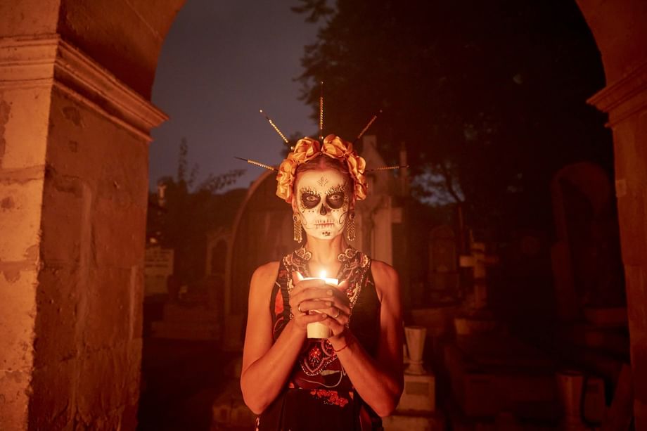 La experiencia más conmovedora e icónica ocurre en el Panteón de Xoxocotlán, a las afueras de la ciudad. Allí, las familias pasan la noche acompañando a sus seres queridos entre veladoras, música y flores de cempasúchil. La atmósfera es mágica: un mar de luz y color que transmite la esencia más profunda del Día de Muertos en Oaxaca.