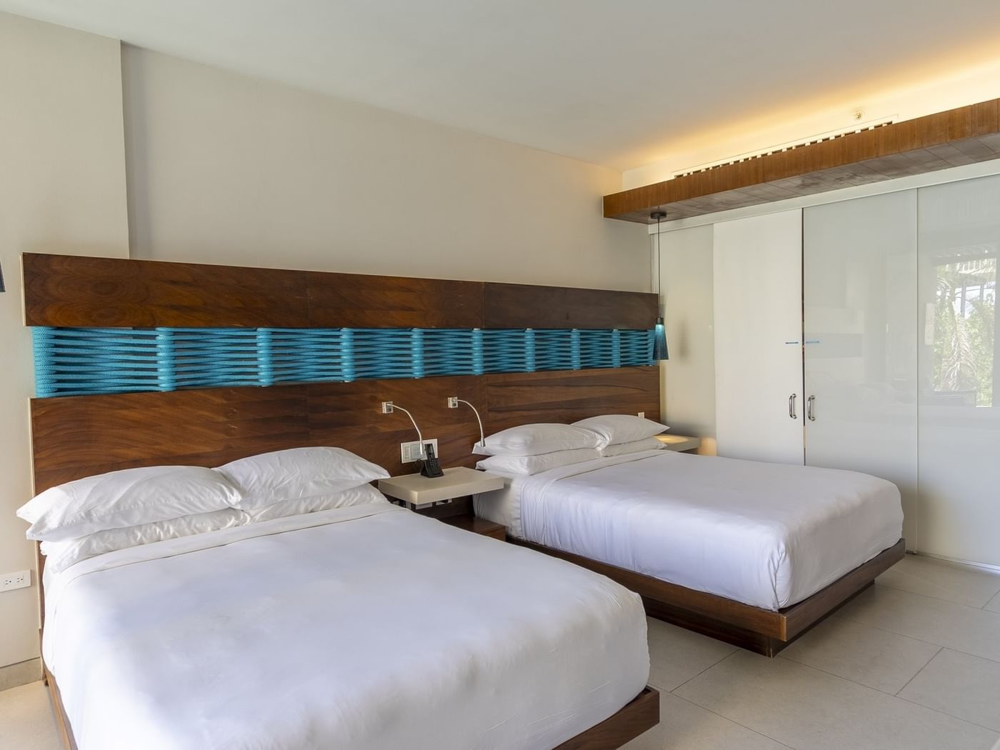 Diseñada para ofrecer comodidad y accesibilidad plenas, esta amplia habitación cuenta con dos camas dobles, ducha a ras de suelo, puertas ensanchadas y servicios a menor altura, pensados para facilitar cada movimiento.