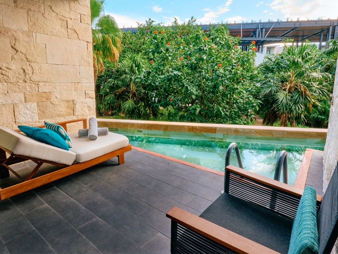 Un espacio donde el diseño elegante y los amenidades de alta gama se combinan con la frescura del agua y la cercanía del sol, creando la mezcla perfecta de lujo y ocio en un entorno íntimo y relajado. Ideal para amigos o parejas, esta habitación ofrece dos camas Queen vestidas con ropa de cama de lujo y acceso directo, desde tu terraza privada, a una alberca semi‑privada que invita a sumergirse en cualquier momento del día. Deja que la noche te envuelva, mañana será un motivo para celebrar.