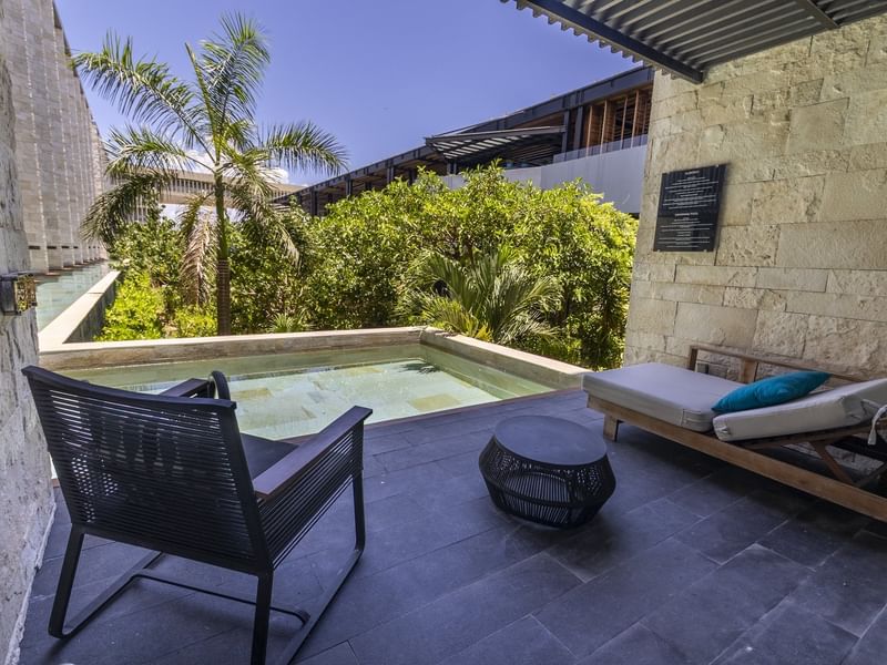 Desde tu terraza amueblada, accede directamente a una alberca semi‑privada que invita a refrescarte en cualquier momento del día. En el interior, una cama King vestida con ropa de cama de lujo y vistas al jardín crean un ambiente íntimo, sereno y rodeado de naturaleza. Un refugio donde el diseño elegante y los amenities de alta gama se combinan para ofrecerte una experiencia de relajación y placer absolutos. Deja que la noche te envuelva, mañana será un motivo para celebrar.