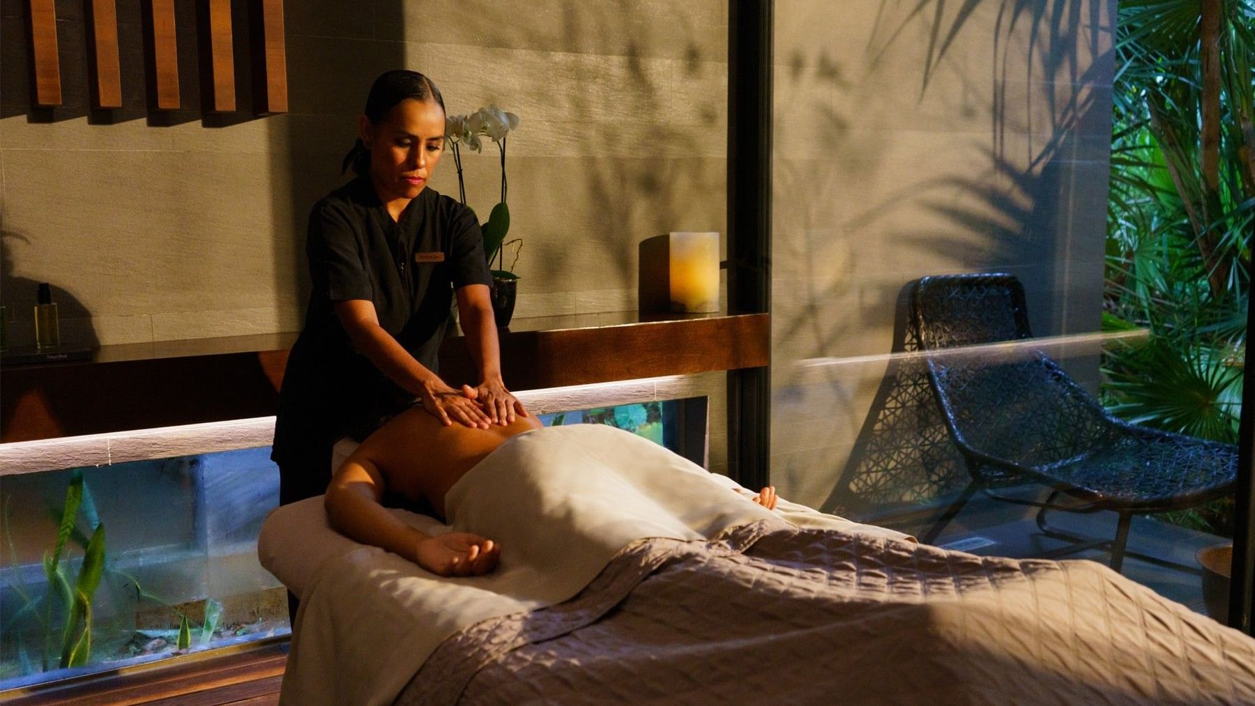 Inspirados en la esencia y pureza de los cenotes de la Riviera Maya, nuestro spa de bienestar se presenta como un santuario sereno y envolvente, donde cada elemento—el agua, la tierra y el cuidado genuino de nuestros profesionales—se fusiona para invitarte a reconectar profundamente contigo mismo. Explora hidroterapia, rituales para parejas y un gimnasio con vistas al mar.