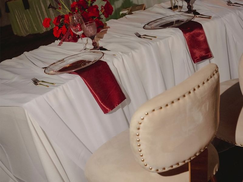 Con techos altos, iluminación elegante y un espacio versátil tanto para eventos íntimos como para grandes recepciones, el salón Devossion está diseñado para transformar su evento en una celebración artística.