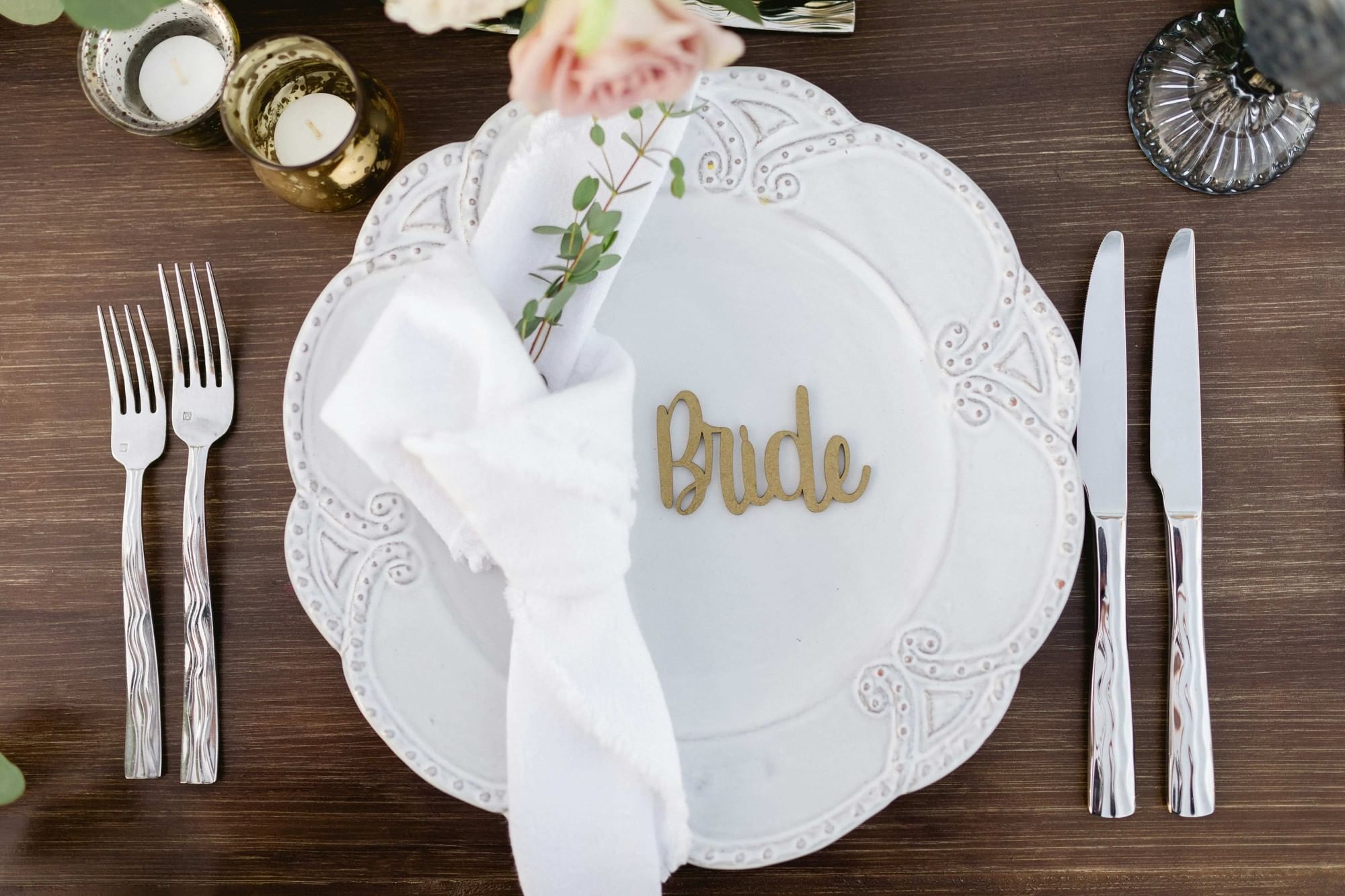 - Base plates, linens, and colored napkins of your choice