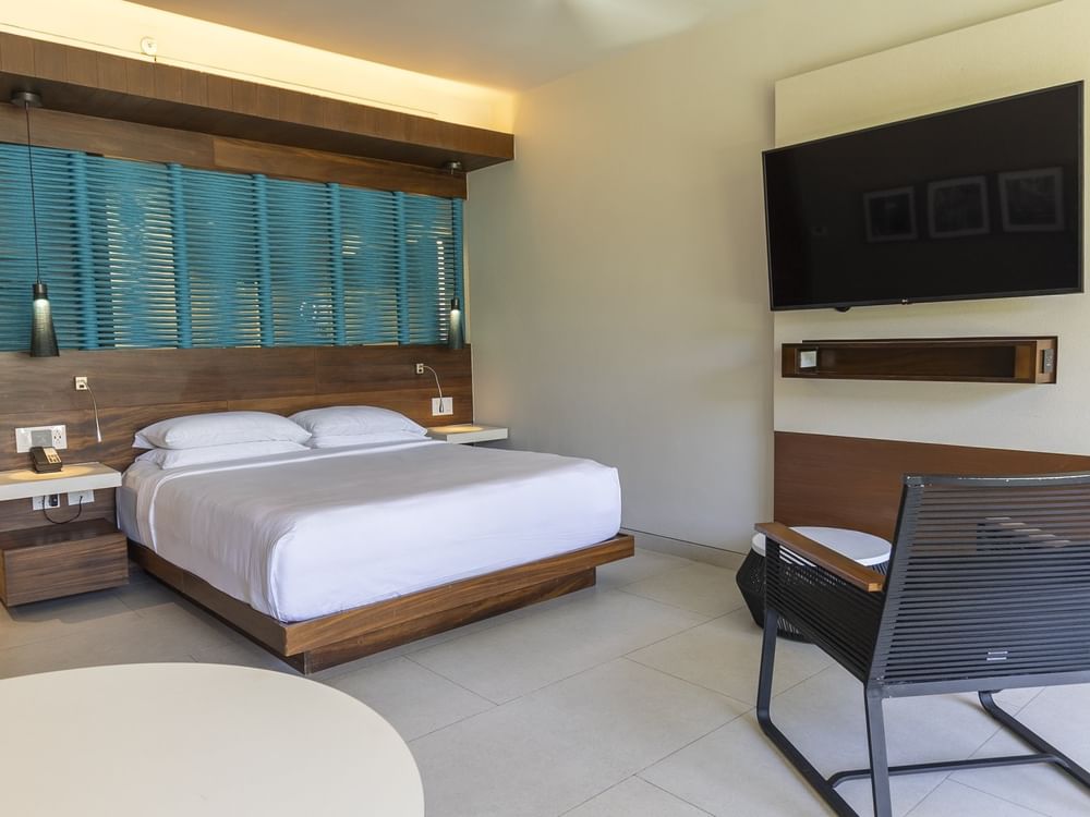 From your furnished terrace, access a semi-private pool directly, which invites you to refresh yourself at any time of the day. Inside, a King bed dressed with luxurious bedding and garden views create an intimate, serene atmosphere surrounded by nature. A refuge where elegant design and high-end amenities combine to offer you an experience of absolute relaxation and pleasure. Let the night envelop you, tomorrow will be a reason to celebrate.