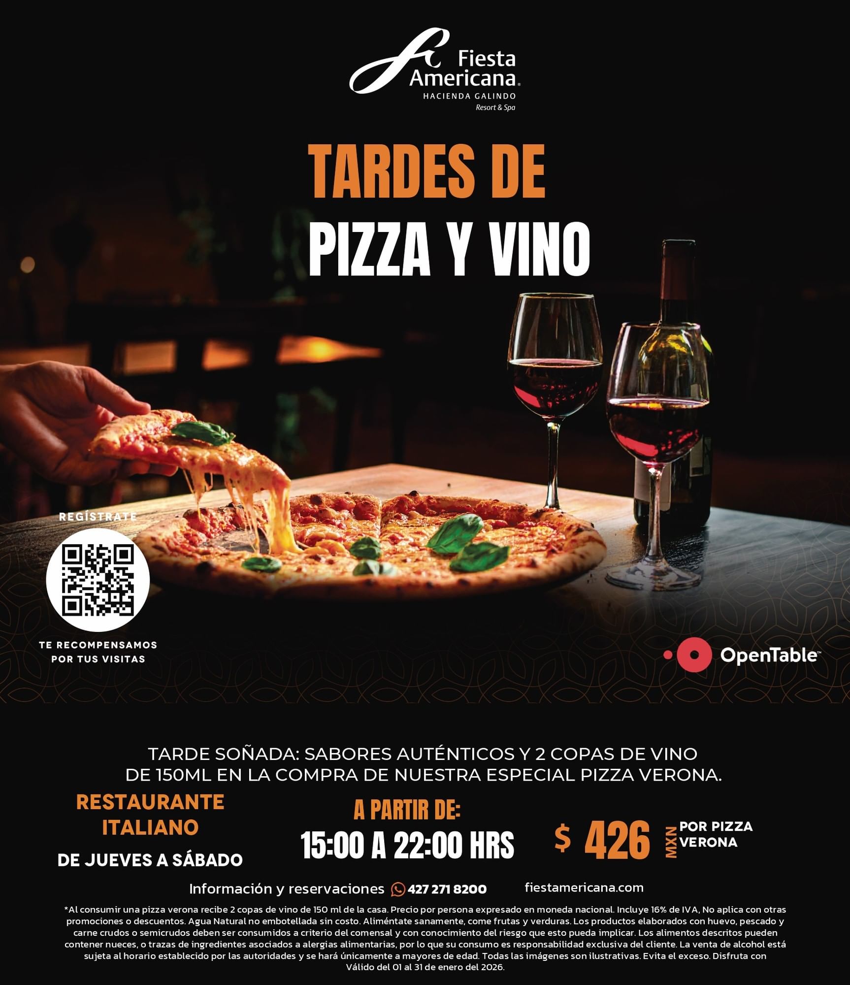 At the heart of Fiesta Americana Hacienda Galindo Resort & Spa lies this Mediterranean-inspired space that invites you to enjoy la dolce vita. Every detail—from its décor to its curated wine selection—creates the perfect setting to savor dishes prepared with passion and care.