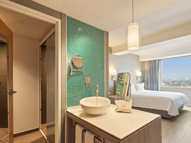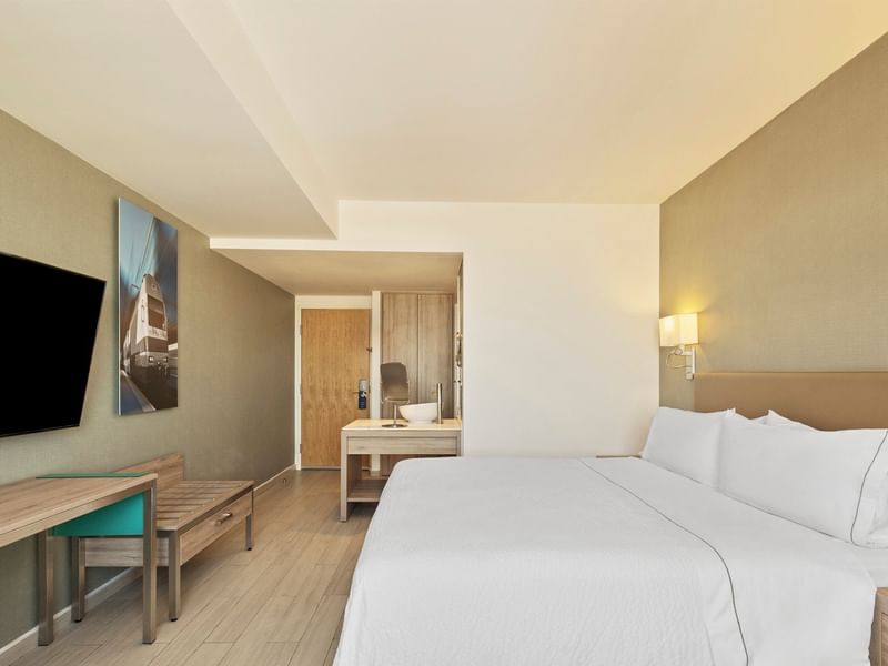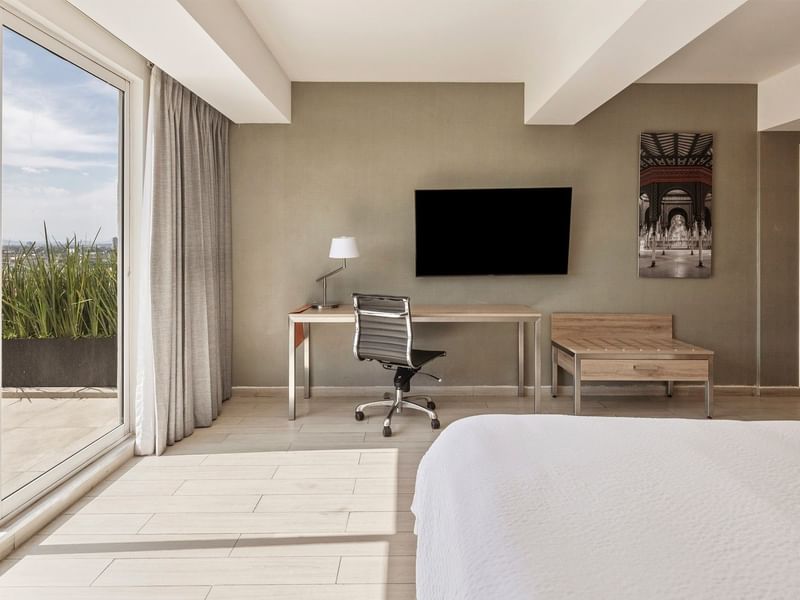 Find the perfect balance in this comfortable room, where you can be productive or relax. The atmosphere is welcoming and the furniture is comfortable and functional. Sleep deeply on your King Size bed. After a day full of accomplishments, take an enjoyable bath. If you need to take care of work tasks, you can settle into your comfortable armchair.