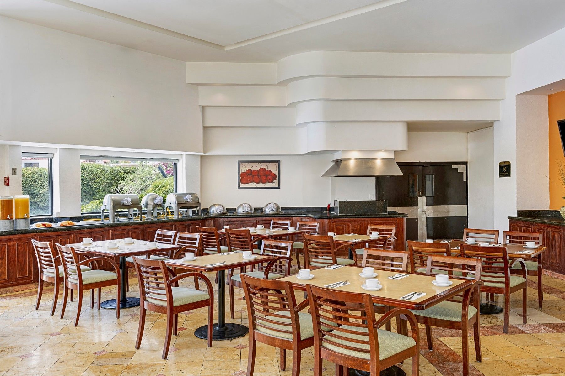 Table set-up in dining area of a restaurant at Fiesta Inn
