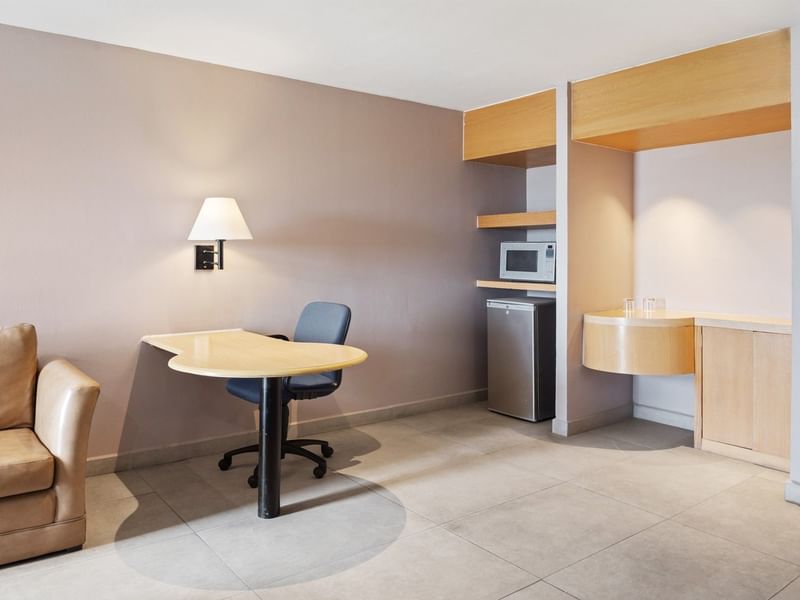 An ideal room for extended stays, offering a double bed, full bathroom, closet, TV with cable, telephone, bathroom with tub and toilet. Decorated in a modern style with excellent lighting.