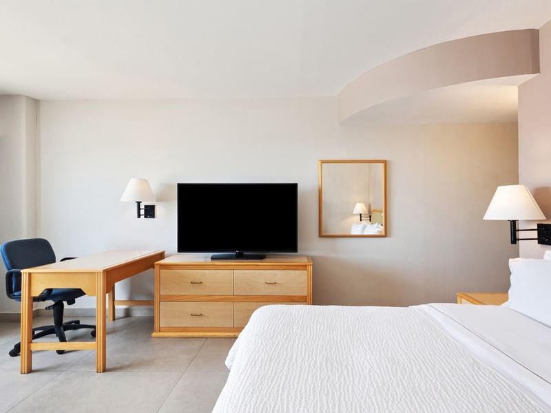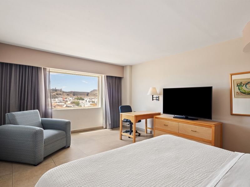 Achieve your goals in this room, which has everything you need to be productive. The atmosphere is warm and the furniture comfortable, enabling you to succeed. Get a good night's sleep on your King Size bed. Take a break to stream your favorite show from your device onto the TV, take a bath or lounge in the comfortable armchair.