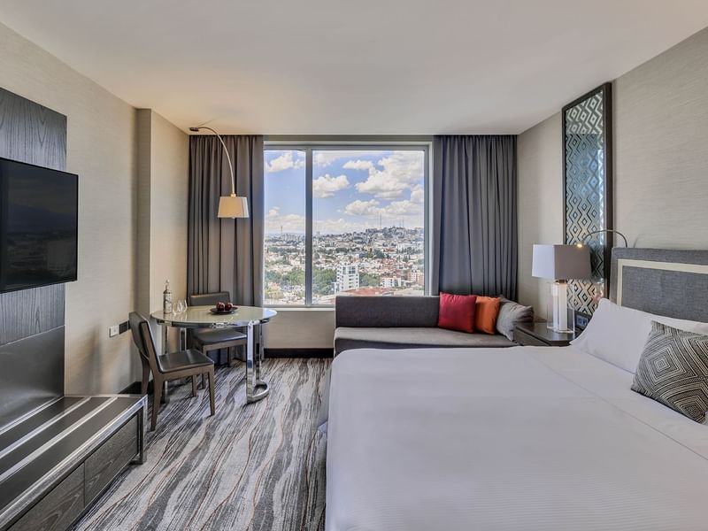 Discover everything you need for a comfortable and pleasant stay in this room, which offers a King Size bed. Watch your favorite shows on the 55-inch flat scren TV or refresh yourself in the rain shower. Relax and read a book on the couch, make a cup of coffee using the Nespresso machine or choose a beverage from the mini bar. There is also a desk in the room.