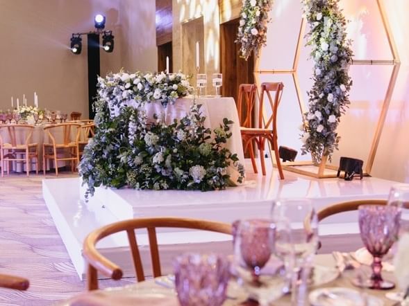 - Floral arrangement for the couple’s table