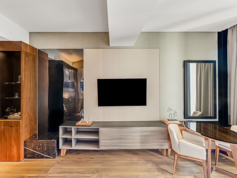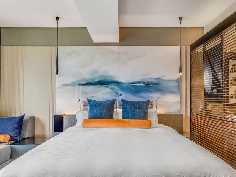Tranquility and thoughtfully designed spaces to be enjoyed through all your senses, with details that accompany you whether you are working or relaxing. Experience the softness of the King-size bed with a feather bed. Choose your pillow from the pillow menu and select an essence from the aromatherapy kit to create a truly unique resting environment. This is your space—select the perfect pillow from our menu and renew yourself in our premium beds.