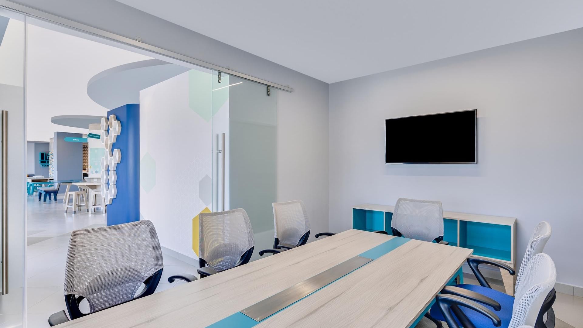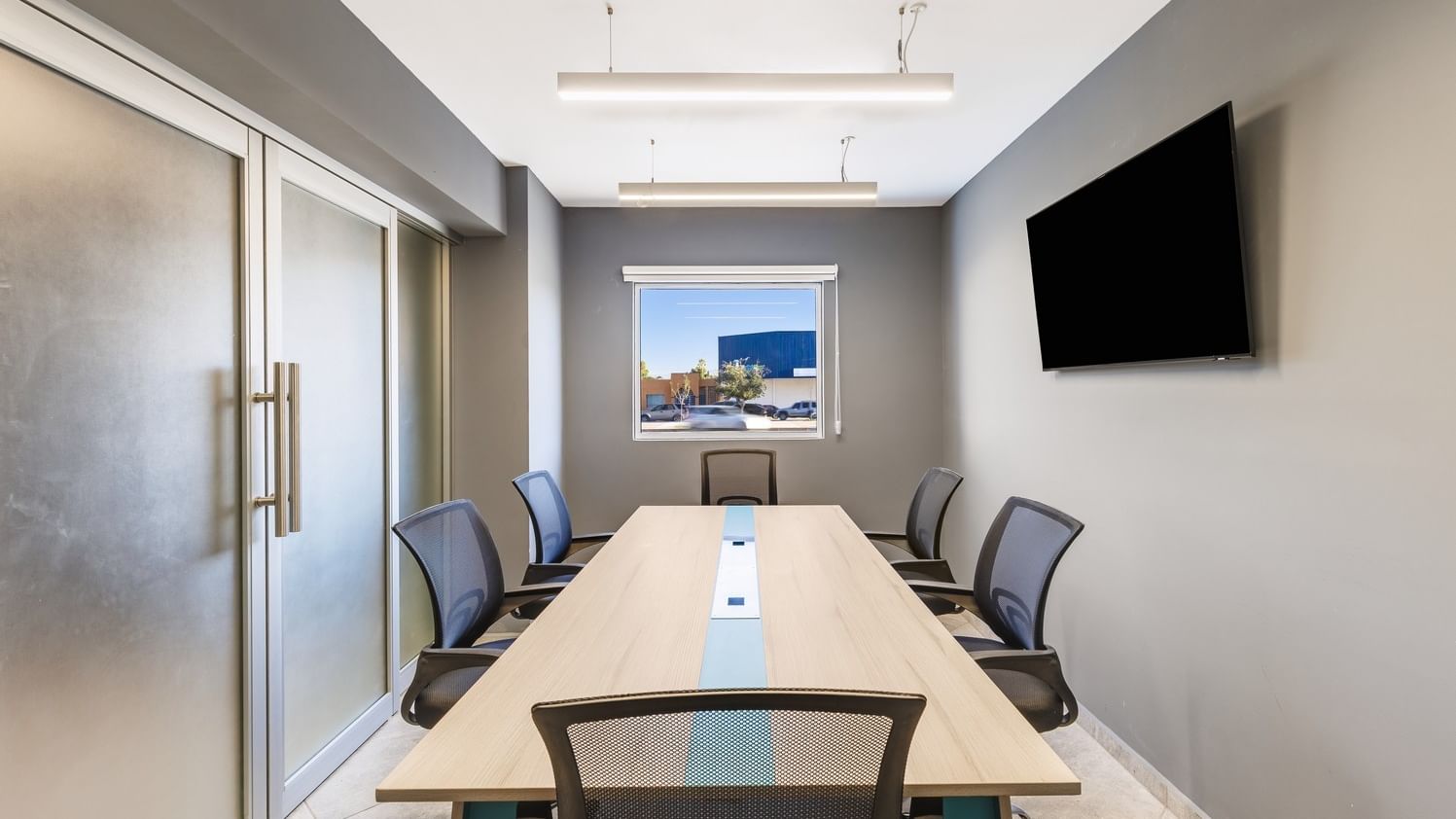 Meet in our executive meeting room with capacity for eight guests, fully equipped for productive gatherings.