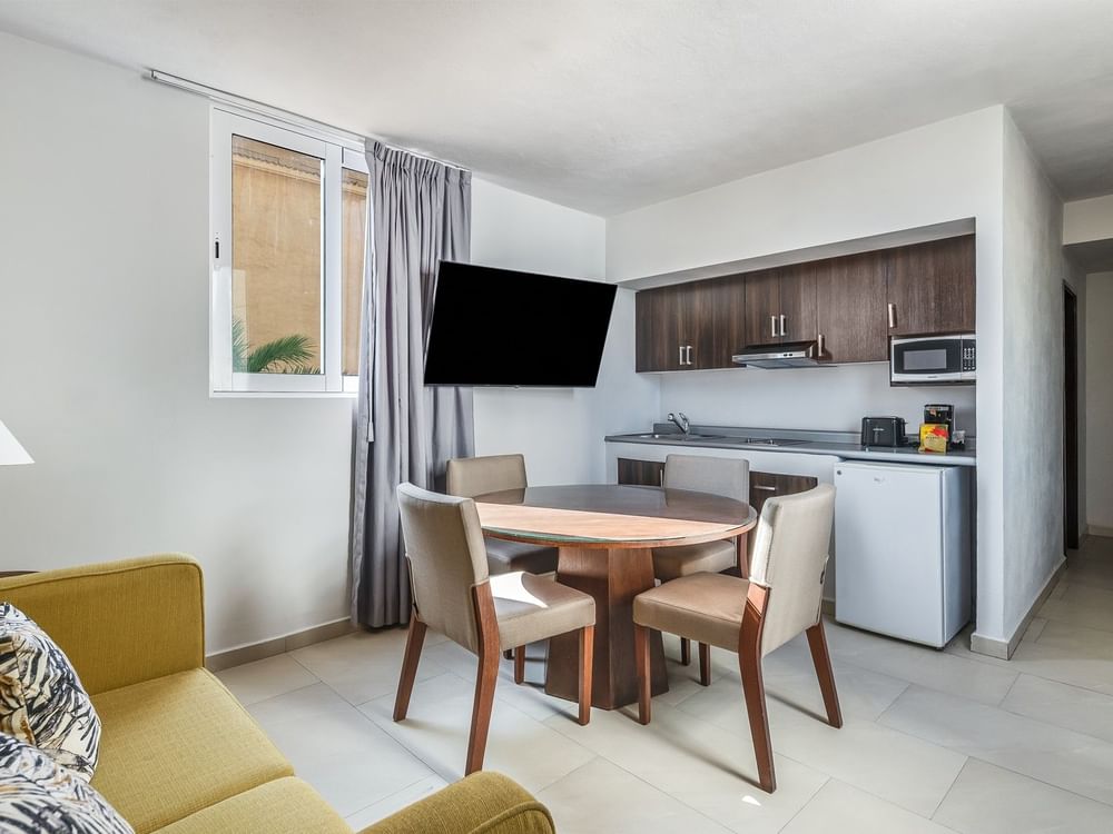 The Junior Suite is designed to make every moment easy and joyful, with plenty of space for families or friends to share. Enjoy a private bedroom with two double beds and a full bathroom. A cozy living area with sofa bed, dining space, and kitchenette provides the comforts of home, with partial garden views, it invites you to relax and connect with the beauty that surrounds you. Thoughtful details and authentic hospitality ensure a relaxing and memorable stay.