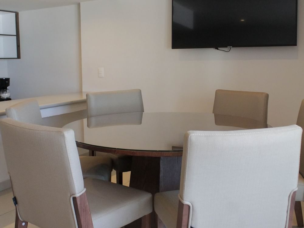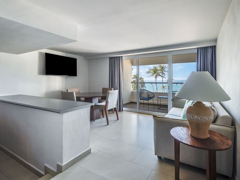 Designed for joyful gatherings and restful moments, this Junior Suite offers the comfort of a private bedroom with two double beds and a full bathroom. A welcoming living area with sofa bed, dining table, and kitchenette creates the perfect setting to share meals and laughter. Step out onto the private balcony to enjoy partial ocean views, where every sunrise and sunset becomes part of the memories you’ll treasure.
