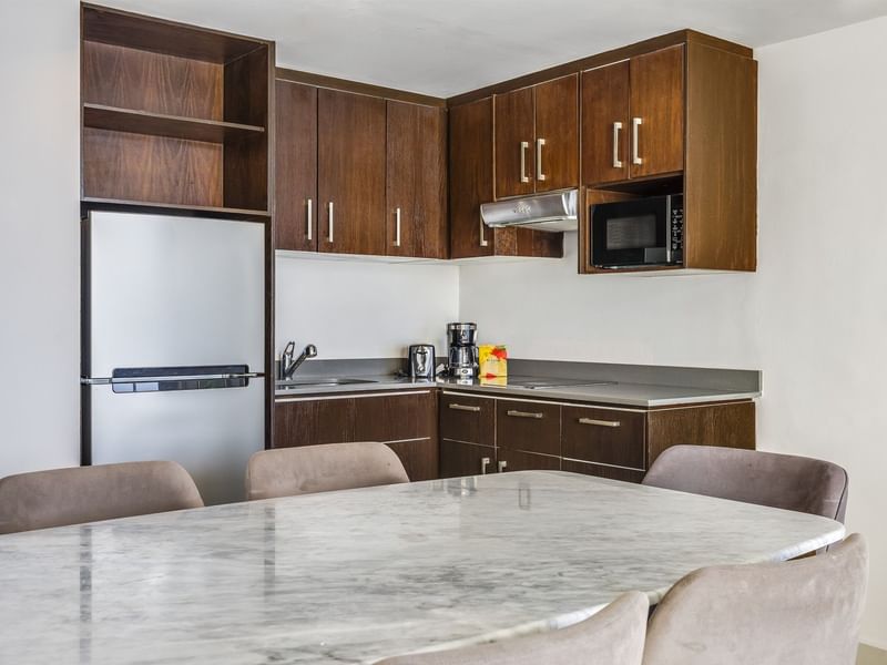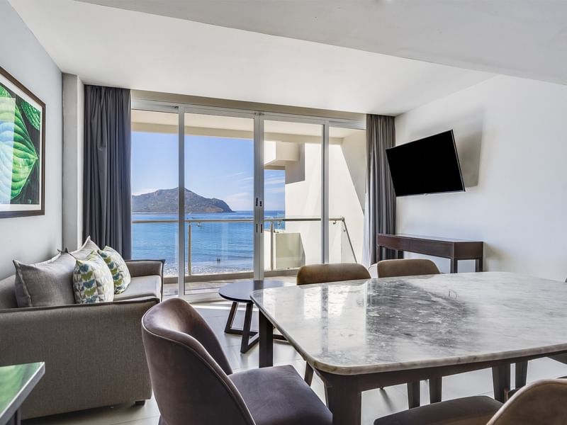 The Luxury Suite is where joyful memories are made. With a private bedroom featuring two double beds and a full bathroom, plus the convenience of a second bathroom, it offers both comfort and ease. A spacious living room with sofa bed, dining area, and a fully equipped kitchen creates the perfect setting for sharing meals, laughter, and relaxation with loved ones. Step onto your private balcony to take in sweeping ocean views—each sunrise and sunset adding beauty to moments you’ll cherish forever.