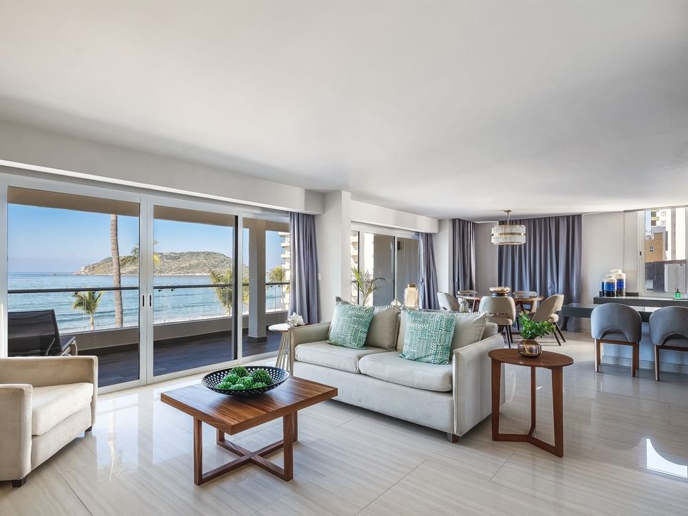 The Two-Bedroom Penthouse is the ultimate setting for joyful moments shared with loved ones. A private bedroom with a king bed and full bathroom pairs perfectly with a second private bedroom offering two double beds and its own full bathroom. A third bathroom adds extra comfort for everyone. With a full kitchen, dining area for eight, and a spacious living room with sofa bed, there’s room for gathering, dining, and celebrating life’s simple pleasures. Step onto your private balcony to take in sweeping, unobstructed ocean views—every sunrise and sunset becomes a memory to treasure forever.