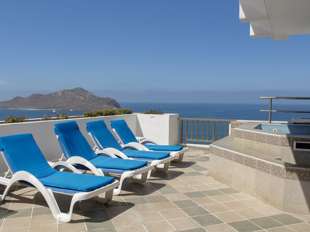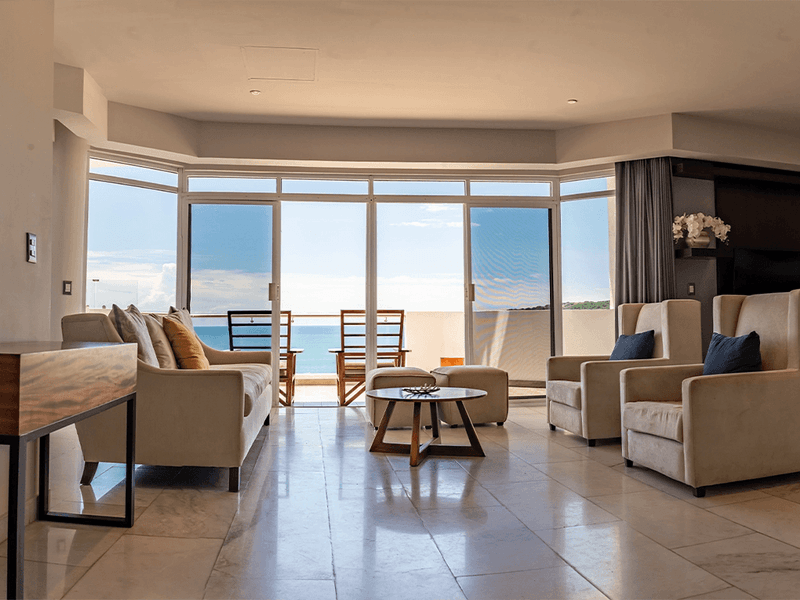 The Three-Bedroom Penthouse is a stunning retreat designed for unforgettable moments of joy with family or friends. One private bedroom features a king bed, a luxurious full bathroom and terrace with jacuzzi for total relaxation, while two additional private bedrooms each include two double beds and their own full bathrooms. A fourth full bathroom in the common area ensures added comfort for all. With a full kitchen, dining area for ten, and a spacious living room with sofa bed, this penthouse is perfect for celebrating life’s simple pleasures together. Step onto the private terrace with Jacuzzi and take in breathtaking oceanfront views—every sunrise and sunset becomes a cherished memory.
