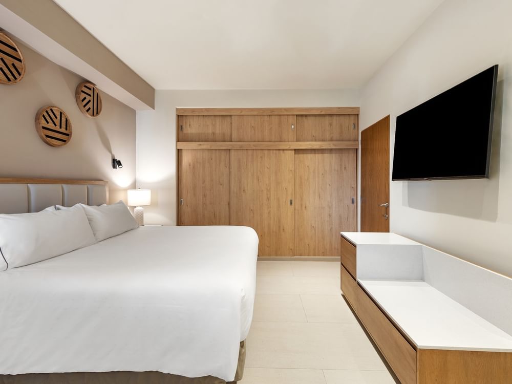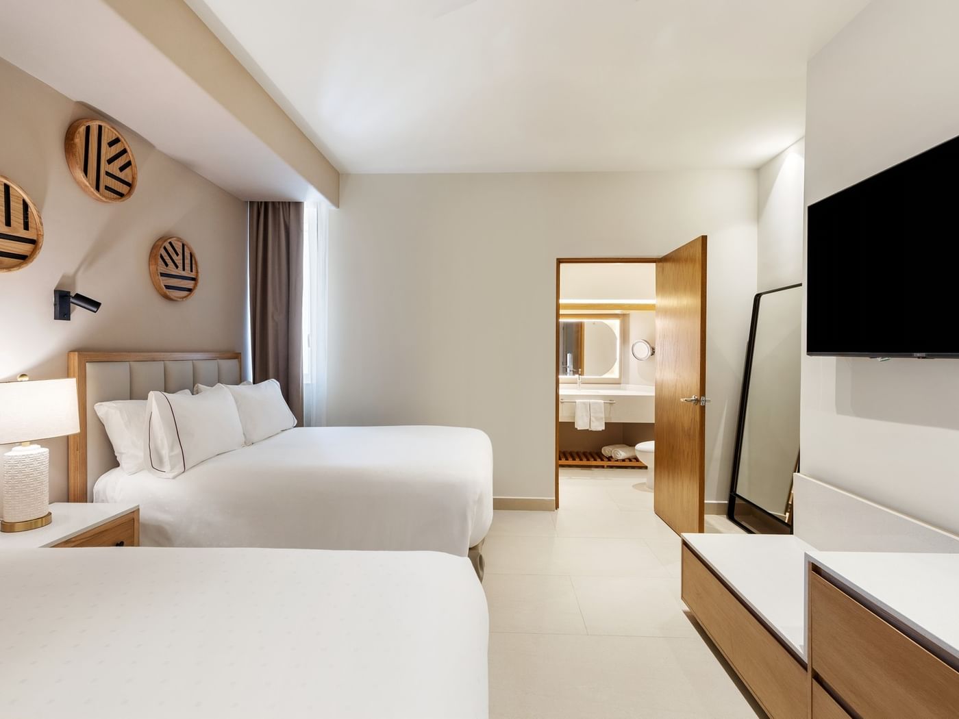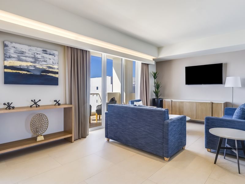 Perfect for families or groups, this two-bedroom suite offers generous space to enjoy life’s simple pleasures together. One private bedroom features a king-size bed and a full bathroom, while the second bedroom includes two double beds and its own full bathroom. A third bathroom adds additional convenience. The suite also includes a spacious living room with sofa bed, a fully equipped kitchen, and a dining table for eight people, ideal for sharing meals and conversation. From the private balcony, ocean views transform every sunrise and sunset into memories that last forever. No rush, no plans… this is how the joy of rest is truly experienced.