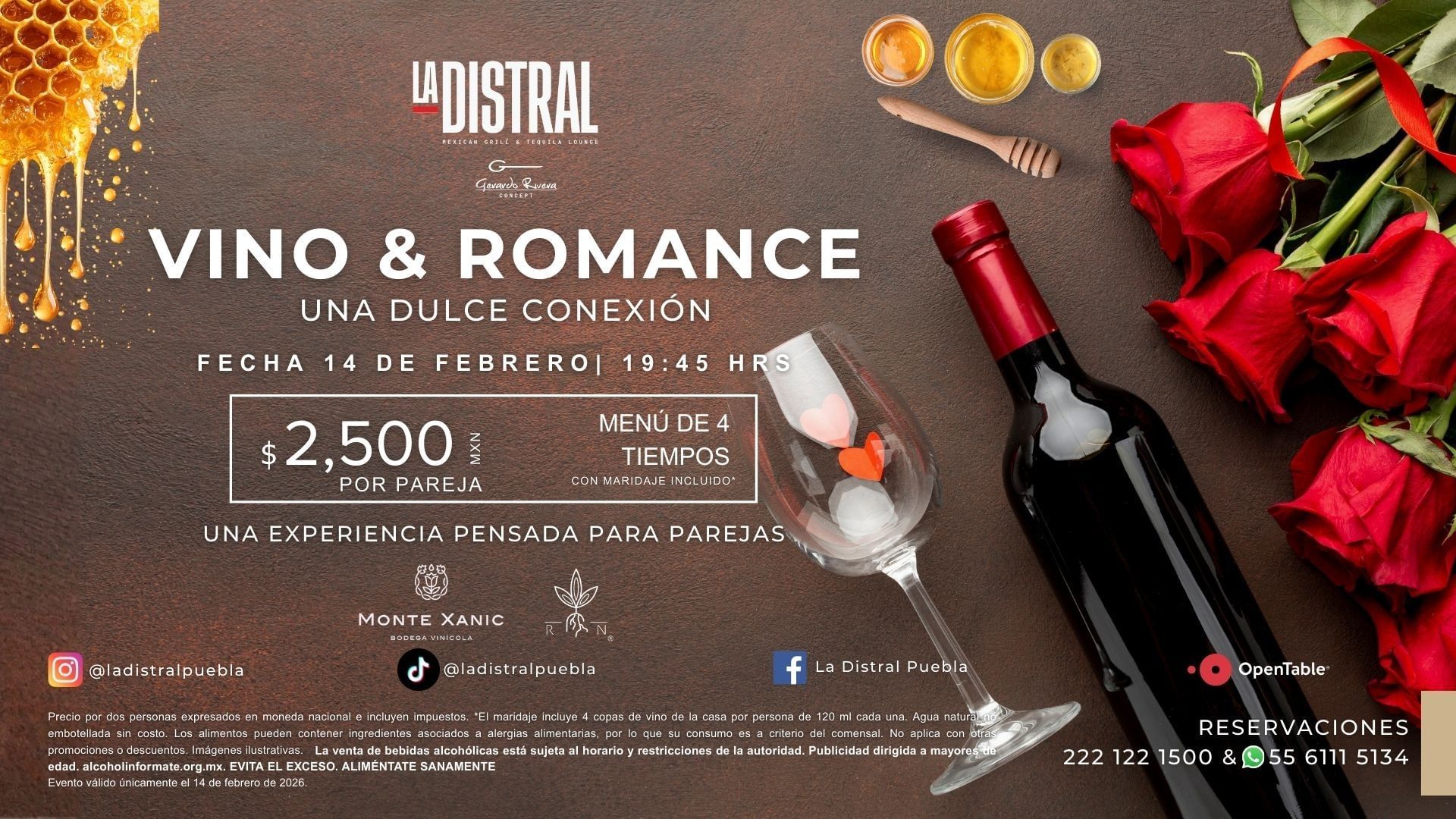 Celebra el amor y el buen gusto en una experiencia única para parejas. Disfruta de una exclusiva selección de vinos maridados con platillos gourmet, en un ambiente elegante y romántico.