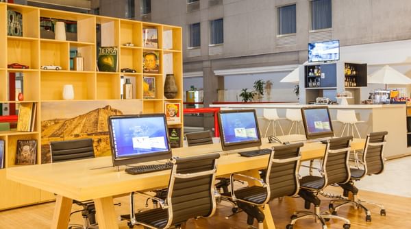 Si quieres revisar tus pendientes en un espacio confortable y privado, contamos con salas de negocios o nuestro espacio abierto que tiene computadoras y un área de trabajo; tenemos lo que necesitas.