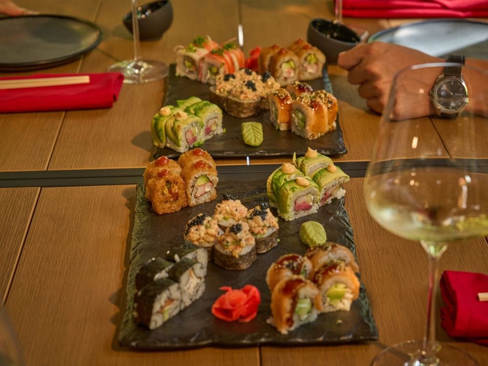 - Sushi Corner: Nuestro restaurante de sushi te ofrece la opción de elegir lo que te apetezca.