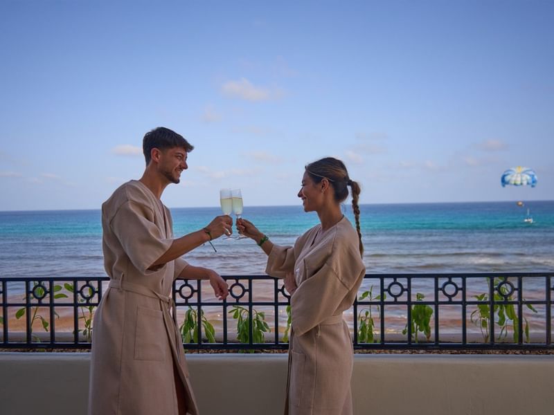 Reserva nuestra Honeymoon Suite o Honeymoon Ocean View With Pool y disfruta en pareja de una impresionante vista al cristalino Mar Caribe. La Suite incluye amenidades exclusivas para vivir experiencias inolvidables como una botella de vino espumoso a la llegada, decoración especial con pétalos de rosa, cena romántica ya sea en la playa o en la terraza de la suite, un masaje en pareja con vista al mar y descuento especial en cenas privadas y carta de vinos.