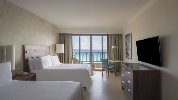 Las habitaciones de Fiesta Americana Condesa Cancún All Inclusive, uno de los mejores resorts de Cancún, están diseñadas para relajarse, descansar plenamente y rememorar con tu familia las inigualables experiencias del día y planear lo que viene a continuación. Nuestras habitaciones y suites poseen atmósferas modernas con toques mexicanos como las cabeceras de piedra natural de conchuela, ropa de cama con sábanas de 300 hilos, Smart TV de 55 pulgadas y ducha de lluvia. Nuestras Master Suites cuentan con bellas vistas al océano y la suite presidencial ofrece una gran terraza privada con jacuzzi. Todas las habitaciones son 100% libres de humo.