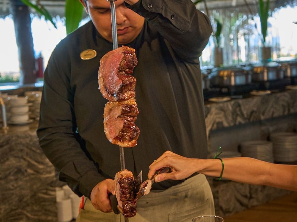 Y por las tardes disfruta una refinada churrasquería frente al mar donde la tradición se fusiona con la elegancia contemporánea.