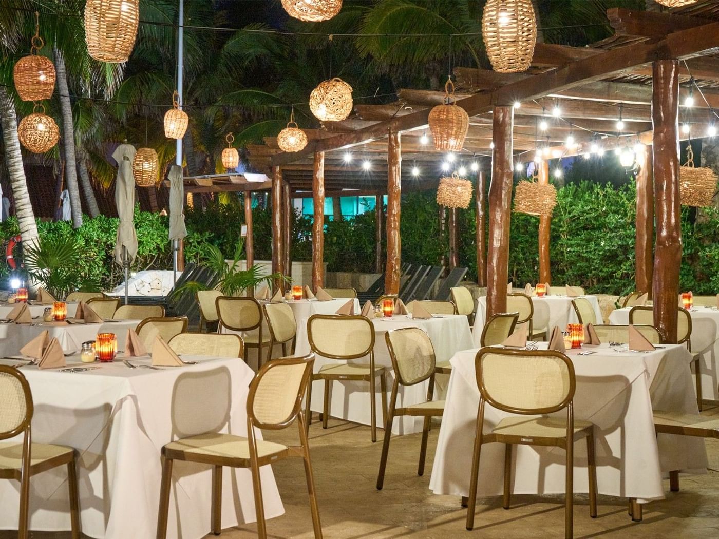 Un rincón de Italia en el corazón del hotel, rodeado de naturaleza y una espectacular vista al mar caribe donde la tradición italiana se traslada a esta romántica atmosfera al aire libre.