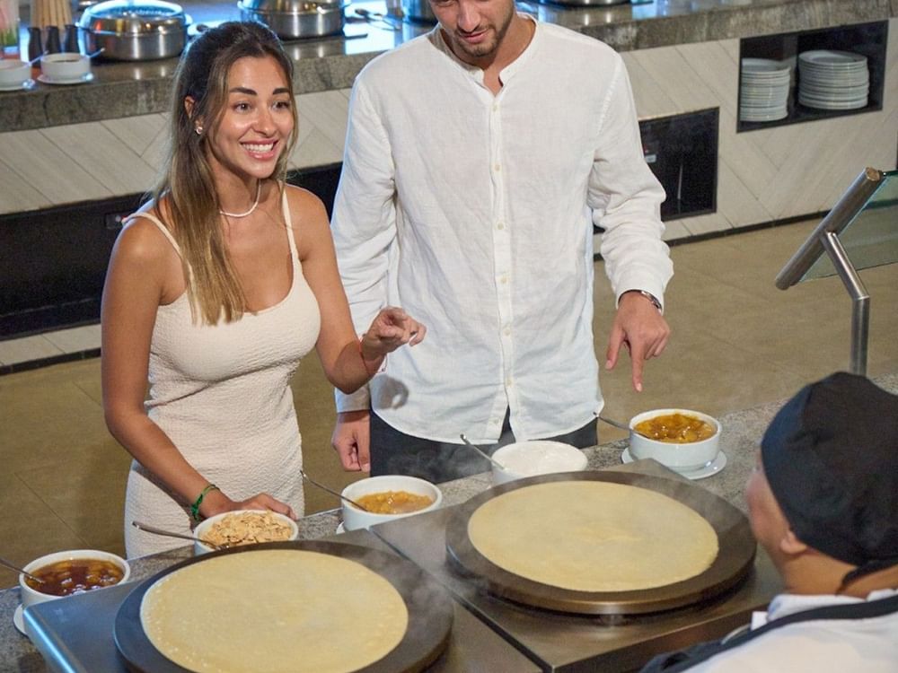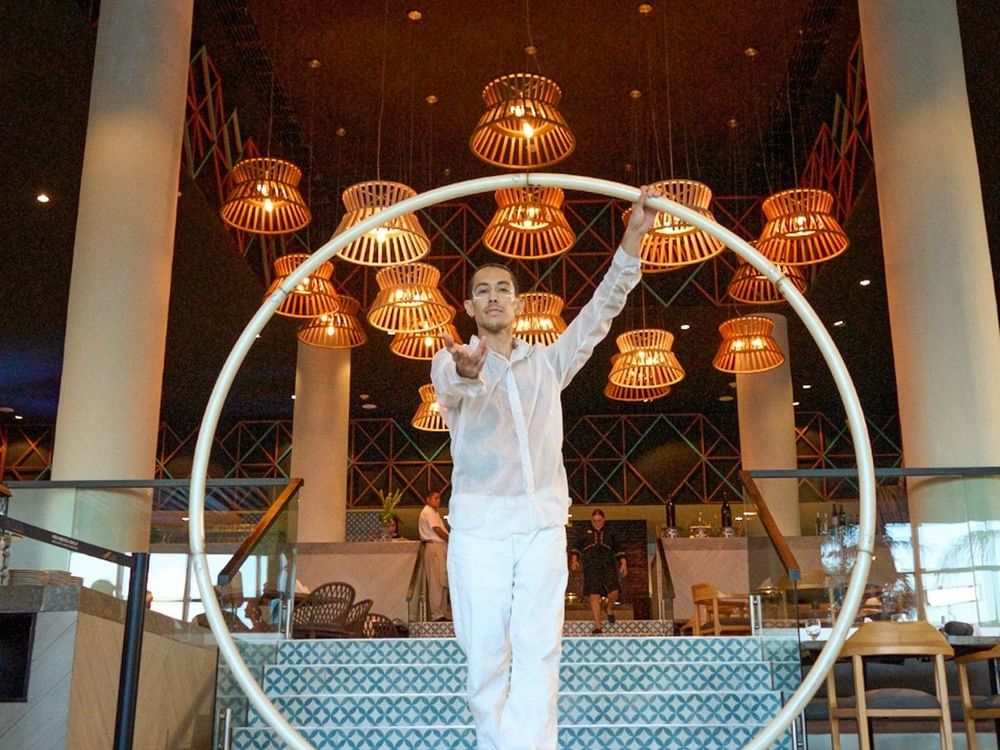 Es el restaurante del hotel donde cada comida se transforma en un viaje por los sabores del mundo, en un entorno frente al mar que combina frescura, variedad y experiencias interactivas que sorprenden al huésped en cada visita.