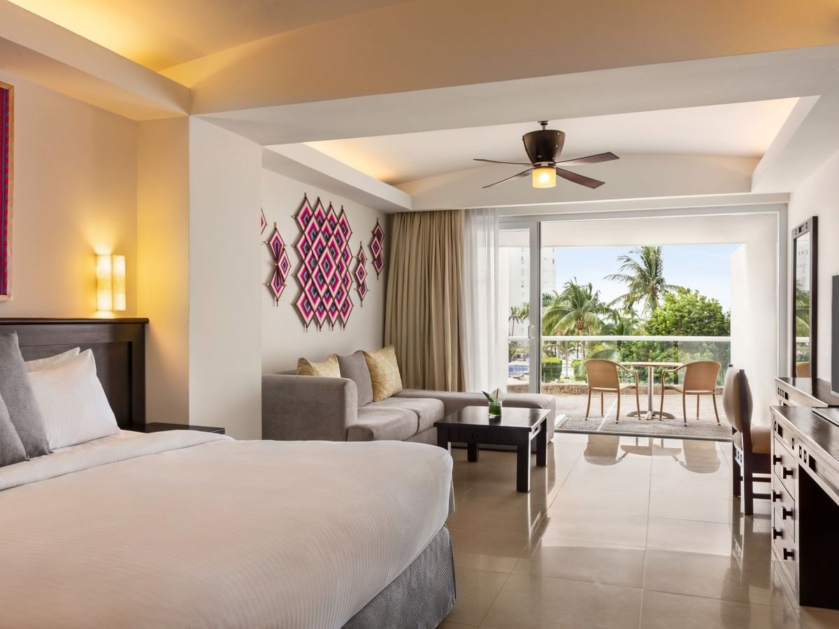 Despertar en este encantador resort significa dejarse cautivar cada mañana por la belleza del entorno, admirando desde los balcones privados las vistas panorámicas tanto de la exuberante zona tropical como la majestuosa Sierra Madre y el mar del Pacífico mexicano. La arquitectura local, donde la flor de bugambilia adorna de manera exquisita cada rincón de nuestro resort, aporta calidez a cada una de nuestras suites que están diseñadas para proporcionar una experiencia reconfortante y placentera, donde el descanso forma parte de la serenidad de cada espacio.
