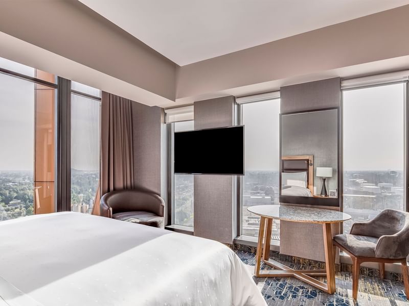 Esta habitación ofrece una suntuosa y cómoda cama King Size. Es el oasis ideal para relajarse con el máximo confort, aire acondicionado, calefacción, televisor Smart LED de 55 pulgadas con canales vía satélite, minibar, baño privado, secadora de pelo, ducha, plancha y tabla de planchar, espacio de trabajo para computadora portátil y servicio a la habitación disponible las 24 horas.