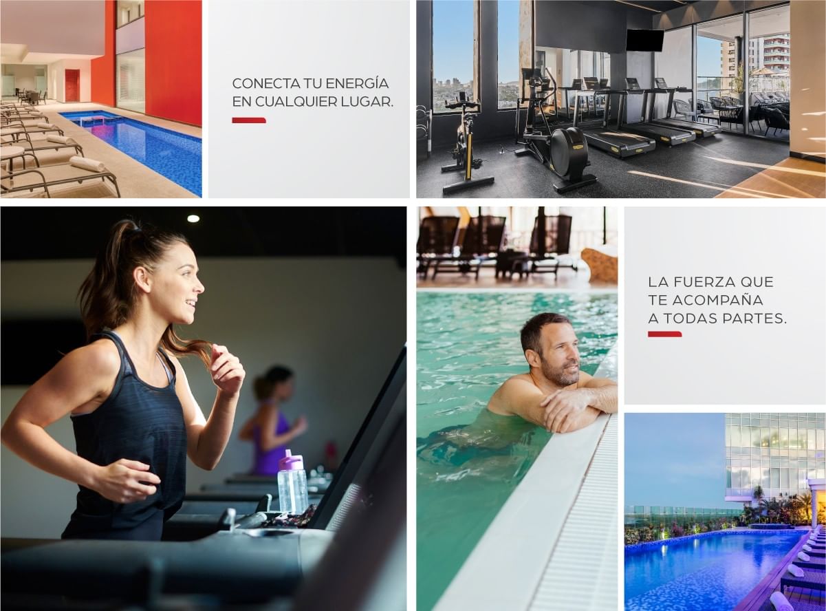 Cuidamos tu bienestar en cada viaje. Todos nuestros hoteles cuentan con espacios diseñados para mantenerte activo, y en algunas propiedades encontrarás áreas adicionales como terrazas o albercas que complementan tu experiencia de descanso.