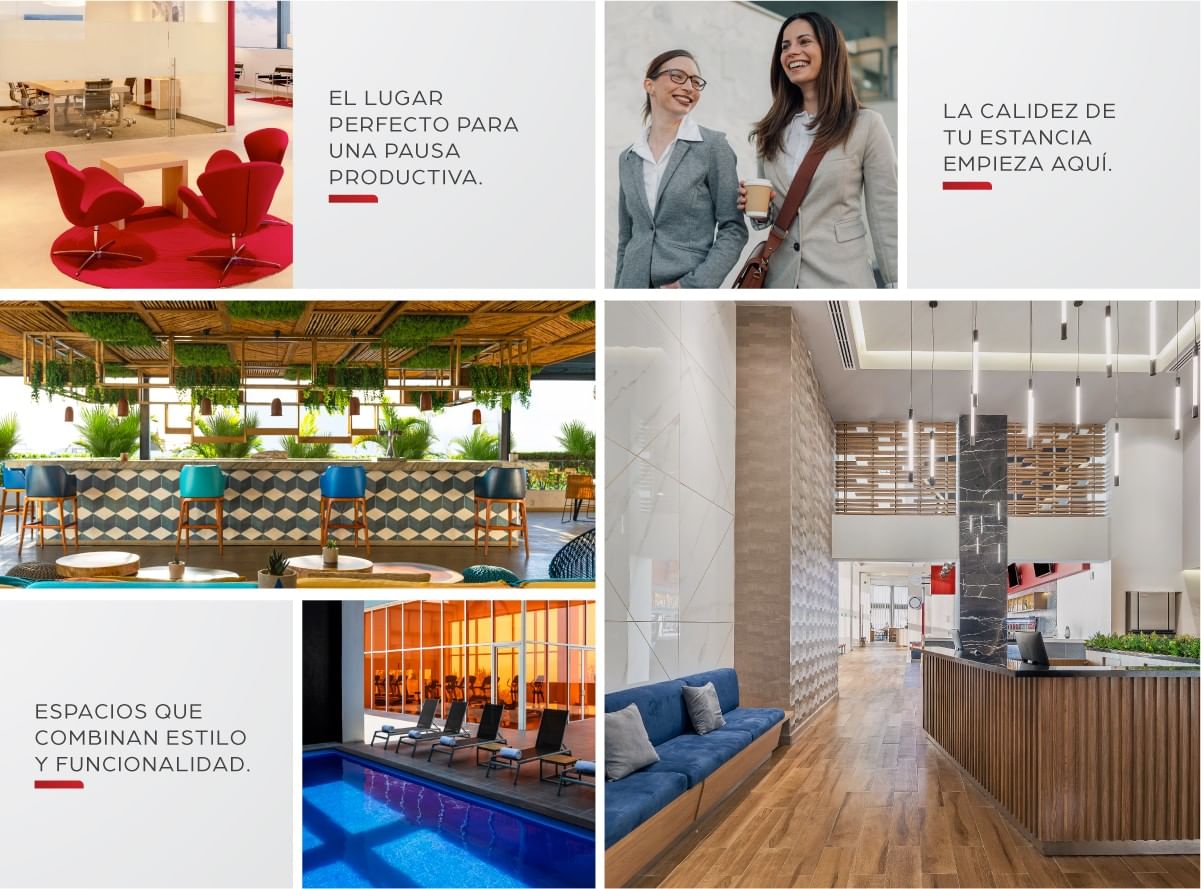 - Áreas de descanso: terrazas, gimnasio y, en algunos hoteles, alberca, para mantenerte en equilibrio.