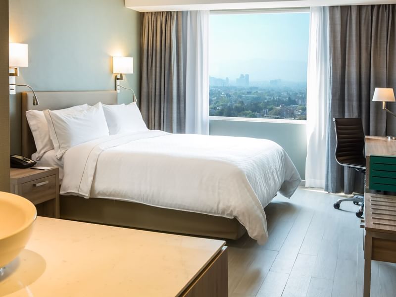 En esta confortable habitación encontrarás un anhelado equilibrio. Creemos en el balance de tu vida, aquí serás productivo o podrás relajarte. El ambiente es cálido, el mobiliario cómodo y funcional. Prepárate para descansar profundamente en la cama King Size. Después de un día lleno de logros, toma un baño disfrutable. Si requieres continuar con tus pendientes, puedes hacerlo desde tu confortable sillón.