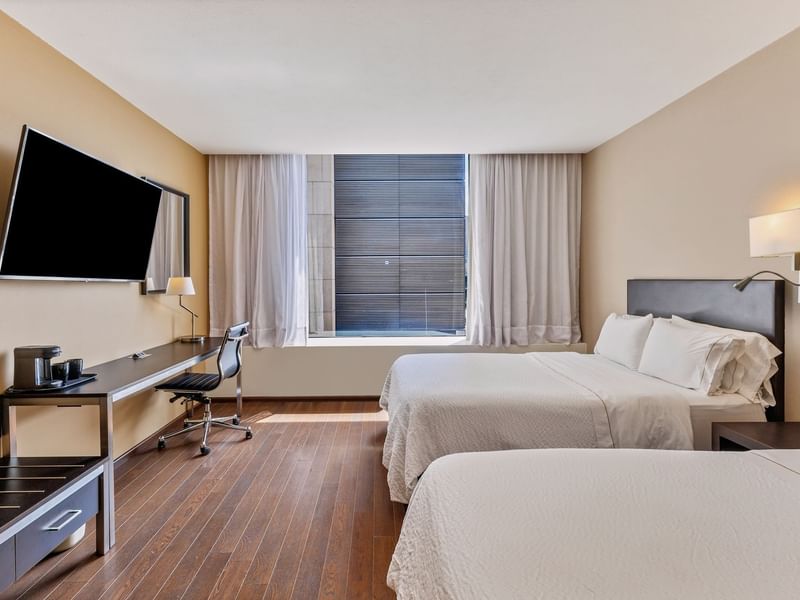 Un espacio que te invita a salir de la rutina y a la relajación. Desconéctate en tu habitación, tienes todo para pasarla bien. Deseamos que descanses en las suaves camas matrimoniales y te recuestes en el confortable sillón. Solicita algo delicioso a room service, mientras ves la TV. Toma un baño disfrutable. Nos gusta que te consientas.