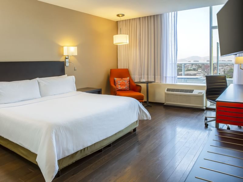 Ese detalle que convierte un viaje en una experiencia inolvidable, además de una habitación cómoda con cama king size y con amenidades especiales, es que te ofrezca la mejor vista panorámica del hotel, como ésta. Ven, pasa tus días y tus noches disfrutando cómo cambia el paisaje, sintiendo cómo la naturaleza te ayuda a recuperar el equilibrio; si tu viaje es de negocios o solo por el gusto de conocer un nuevo destino, nos visites solo o viajes en familia, este ambiente relajado y acogedor es para ti.