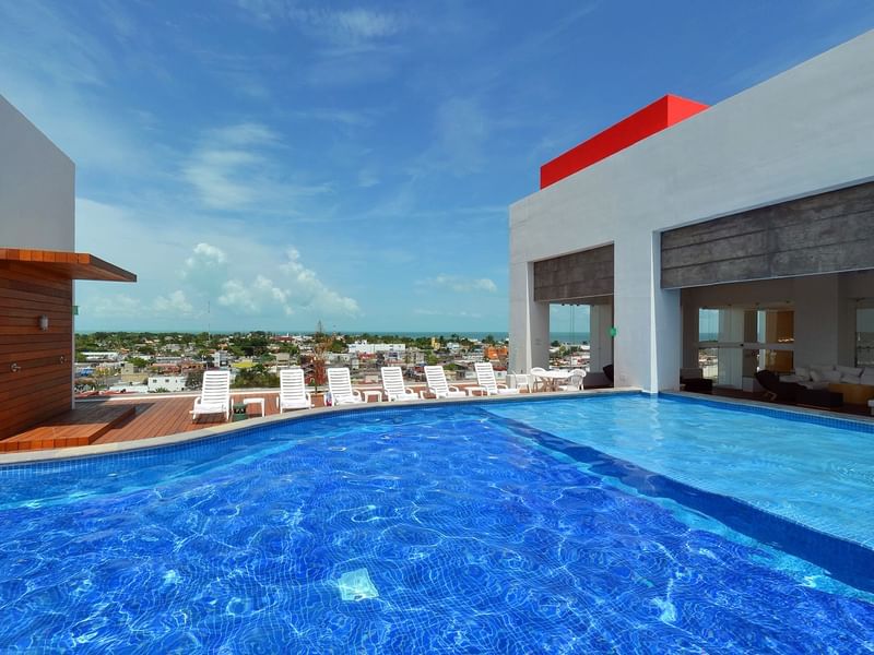 Disfruta de la alberca del hotel y toma una bebida de tu agrado contemplando la bella vista a la ciudad. Sal de la rutina y diviértete.