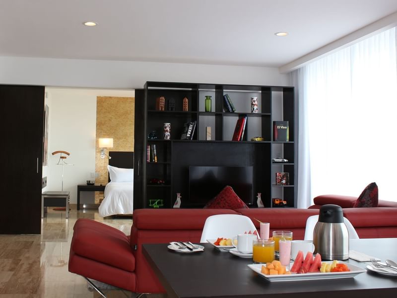 Con todo lo que necesitas para vivir todos tus momentos en un ambiente cálido y confortable, esta habitación te recibe con una terraza desde la que disfrutarás el hermoso paisaje que forman el mar y el cielo; la amplitud es su mayor virtud, aquí tendrás sala, comedor y una cocineta equipada, una barra lista para lucir tus cualidades de barista preparando tus bebidas favoritas. El amplio baño cuenta con una tina donde podrás relajarte, para después descansar a gusto en la cama King Size; además, tendrás amenidades especiales que completan tu experiencia en balance total.