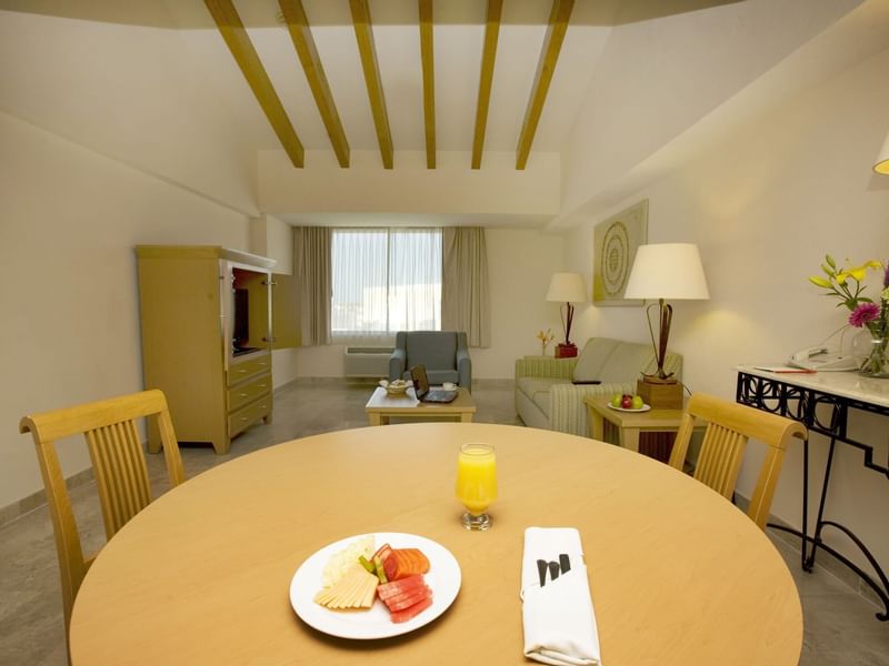 El ambiente relajado y moderno de esta suite, con amenidades especiales que le agregan valor a tu experiencia, te ayudará a despejar tu mente, por si tienes que terminar algún pendiente, solo relájate en las dos camas dobles, disfrutando de la TV, escuchando tu música favorita o leyendo algún libro. Encuentra el balance y disfruta tu estancia gracias al mobiliario funcional y agradable de esta habitación.