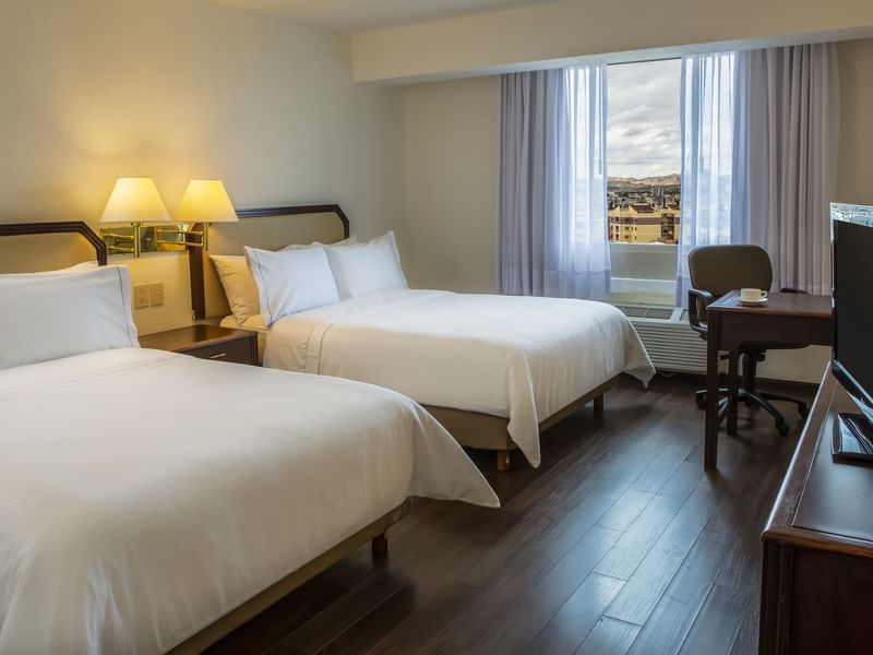 Tu habitación está diseñada para que puedas ser productivo. El ambiente es cálido y el mobiliario cómodo, te ayudará a cumplir tus planes. Queremos verte triunfar. Ten un sueño reparador y descansa profundamente en cualquiera de las camas matrimoniales. Solicita a room service lo que desees del menú, mientras continúas revisando tus pendientes. Haz una pausa, transmite tu serie favorita desde tu dispositivo a la pantalla de TV, toma un baño o recuéstate en el confortable sillón.