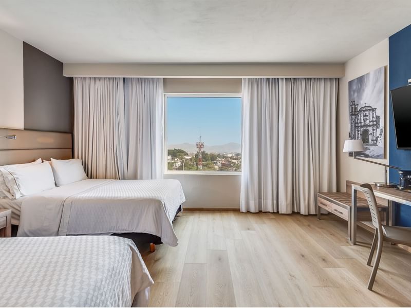 Ese detalle que convierte un viaje en una experiencia inolvidable, además de una habitación cómoda con dos camas dobles y con amenidades especiales, es que te ofrezca la mejor vista panorámica del hotel, como ésta. Ven, pasa tus días y tus noches disfrutando cómo cambia el paisaje, sintiendo cómo la naturaleza te ayuda a recuperar el equilibrio; si tu viaje es de negocios o solo por el gusto de conocer un nuevo destino, nos visites solo o viajes en familia, este ambiente relajado y acogedor es para ti.