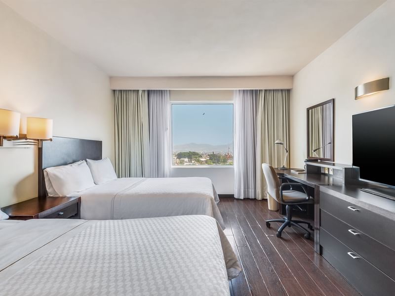 Un espacio que te invita a salir de la rutina y a la relajación. Desconéctate en tu habitación, tienes todo para pasarla bien. Deseamos que descanses en las suaves camas matrimoniales y te recuestes en el confortable sillón. Solicita algo delicioso a room service, mientras transmites tu serie favorita desde tu dispositivo a la pantalla de TV. Toma un baño disfrutable. Nos gusta que te consientas.
