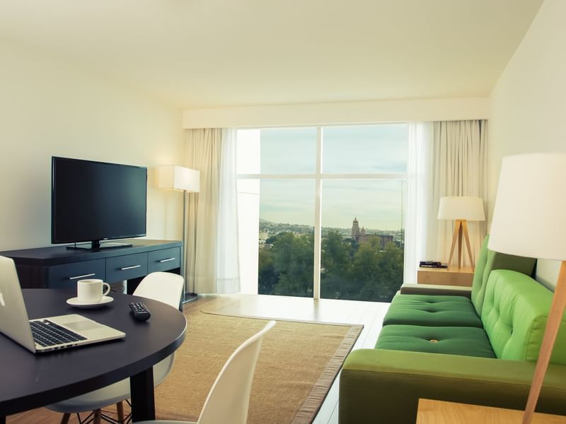 Relájate y siéntete seguro en esta habitación que cuenta con el diseño y los requerimientos que necesitas para que tu estancia sea flexible: podrás ser productivo o desconectarte. El ambiente es cálido y el mobiliario cómodo y funcional. Prepárate para descansar profundamente en la cama King Size. Solicita a room service lo que desees del menú, mientras transmites tu serie favorita desde tu dispositivo a la pantalla de TV. Después de un día lleno de logros, toma un baño disfrutable. Siéntete tranquilo con la barra de seguridad de la regadera, escusado elevado con agarraderas y puerta ancha. Si requieres continuar con tus pendientes, puedes hacerlo en el escritorio.