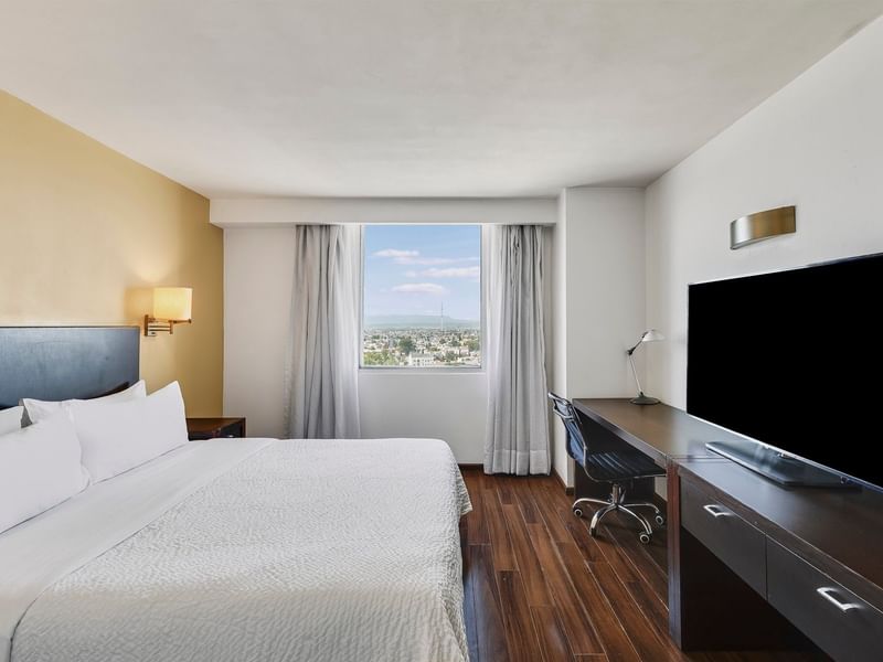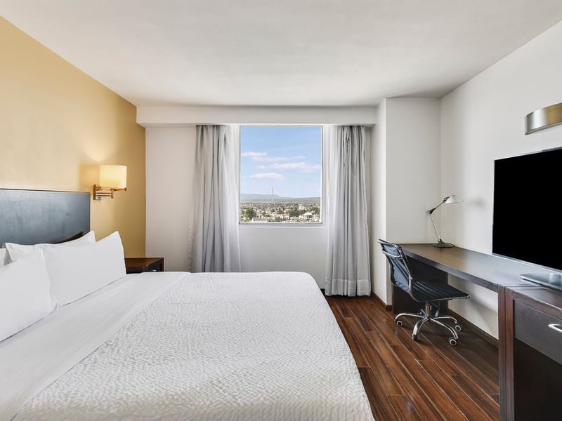 Te brindamos un espacio acogedor para que sigas siendo productivo y logres tus objetivos. El ambiente de esta habitación es cálido y el mobiliario cómodo; te facilitará para cumplir tus planes. Ten un sueño reparador y descansa profundamente en una cama king size. Haz una pausa para ver la TV, tomar un baño o recostarte en el confortable sillón.