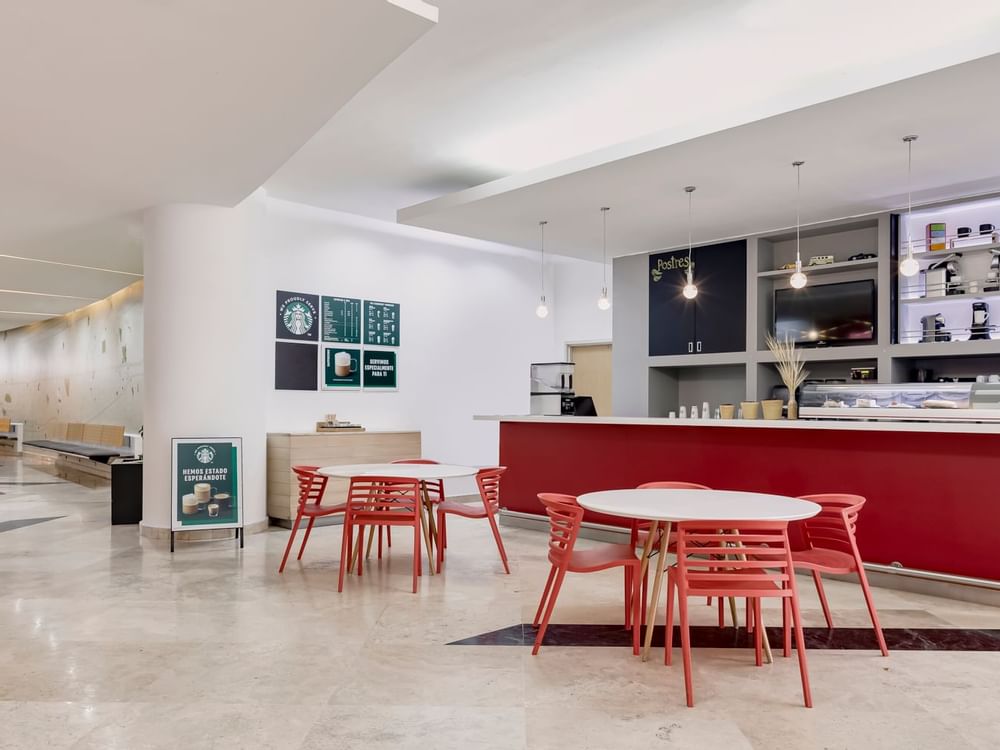 Con el ambiente amable y relajado que lo caracteriza, nuestro Coffee Shop te dará los buenos días con un café, tu bebida favorita o algún refrigerio que gustes.