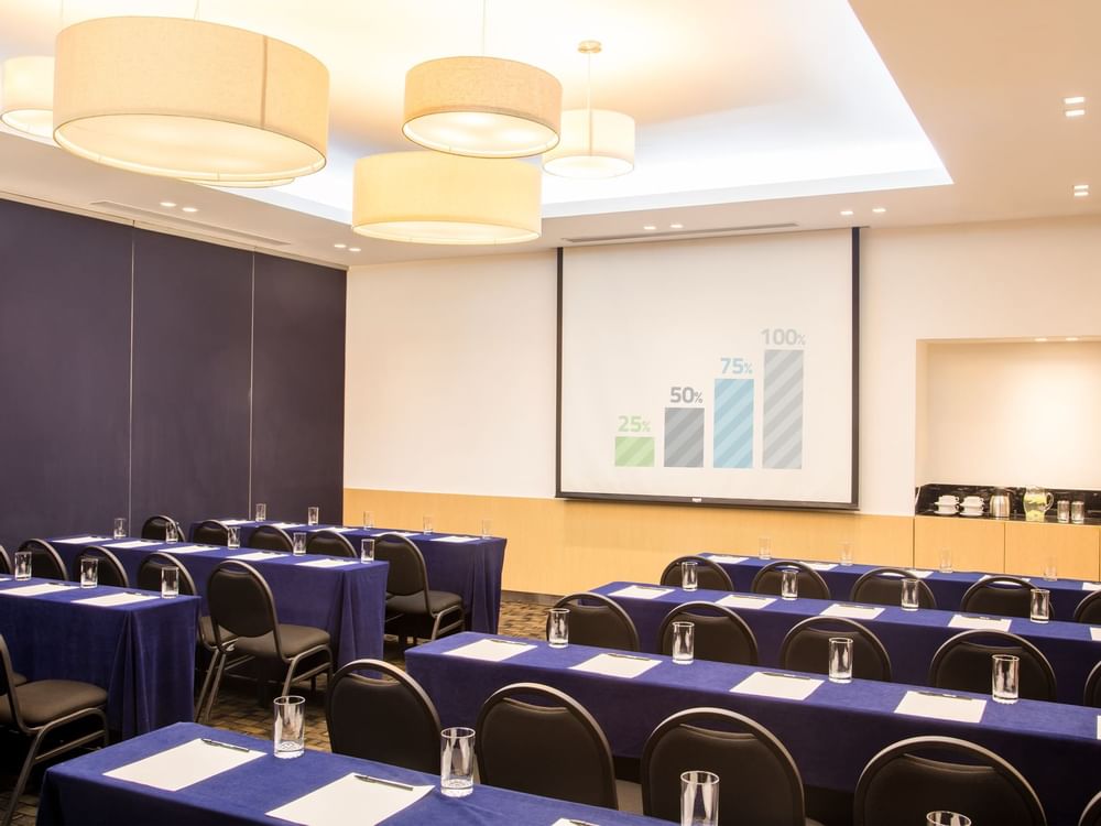 Las amplias instalaciones de Fiesta Inn Insurgentes Viaducto son perfectas para llevar a cabo todo tipo de eventos: sesiones de trabajo, congresos o conferencias. Elige uno de los mejores salones del hotel y crea un evento extraordinario. Cada salón está equipado. Son flexibles y se adaptan a tus deseos para que tu evento sea exitoso.