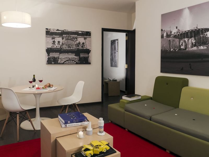 Tu suite te espera para tener días de productividad y logros, con noches relajantes. Aquí lograrás un balance, descansa o sé activo cuando lo decidas. Reconfórtate con la amplitud de esta suite que te ofrece sala y comedor.. El ambiente es cálido y el mobiliario, cómodo y funcional. Recuéstate en tu confortable sillón y solicita a room service lo que desees del menú, mientras transmites tu serie favorita desde tu dispositivo a la pantalla de TV. Prepárate para descansar profundamente en la suave cama King Size. Si requieres continuar con tus pendientes, puedes elegir el escritorio.